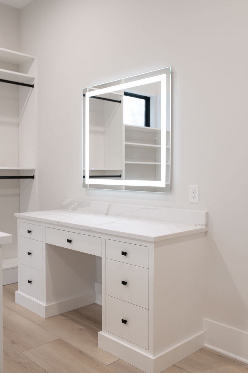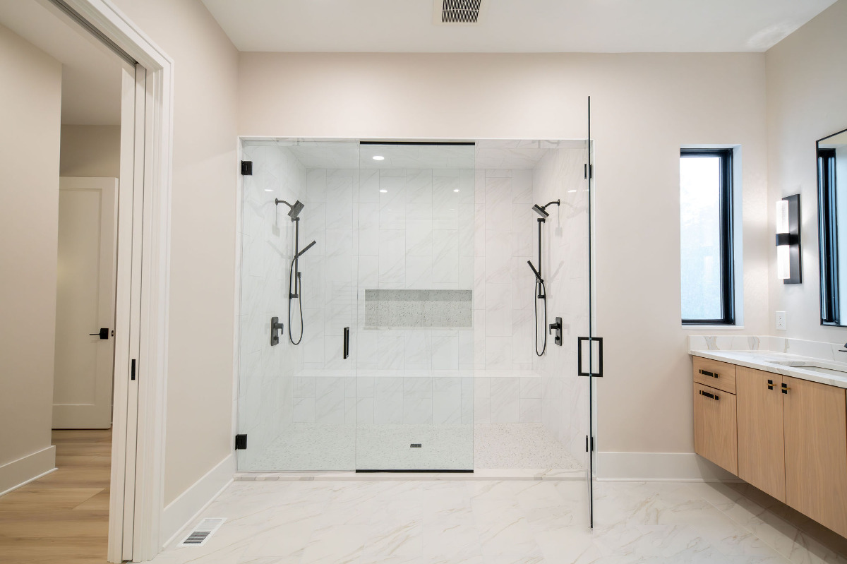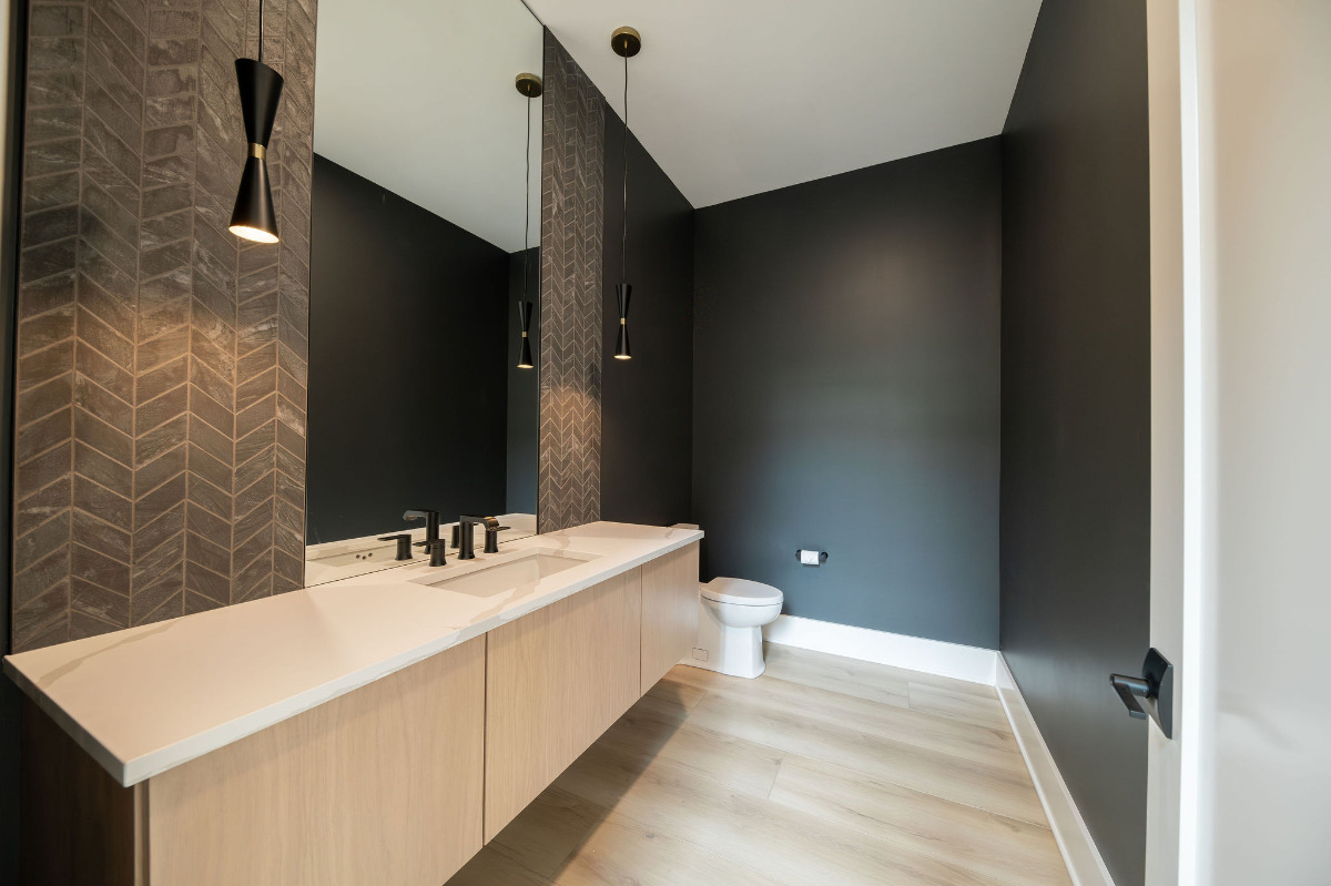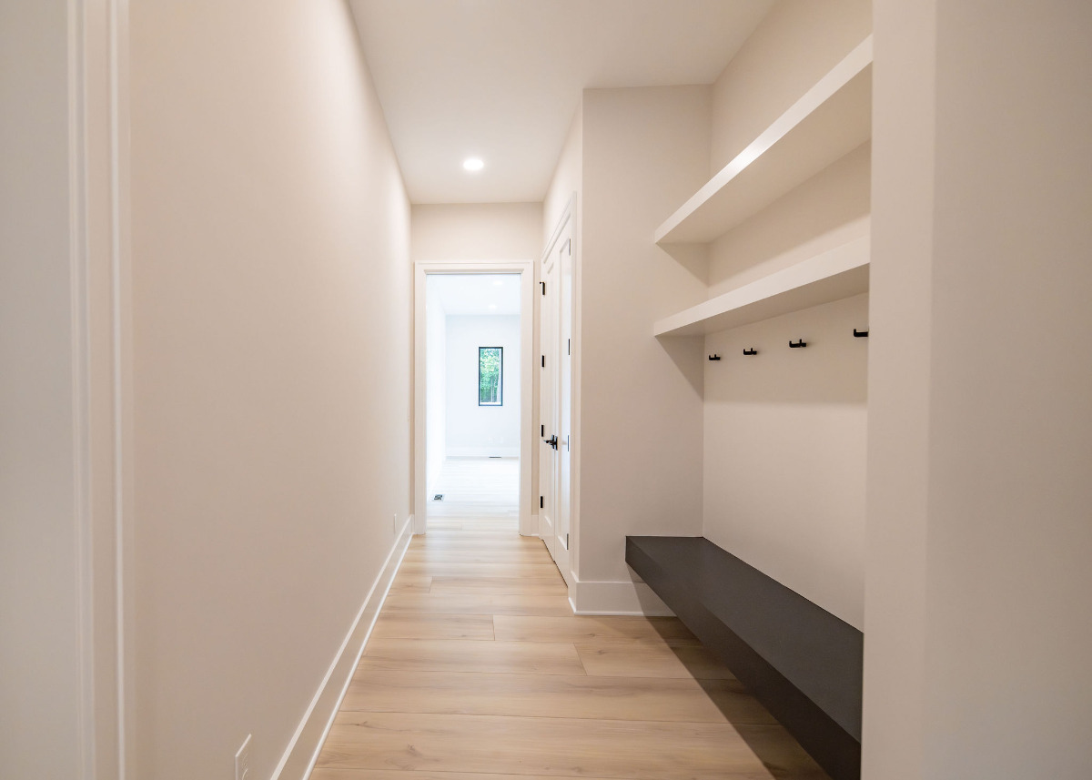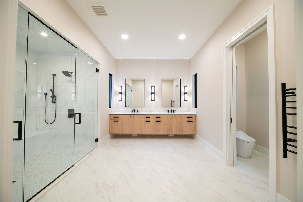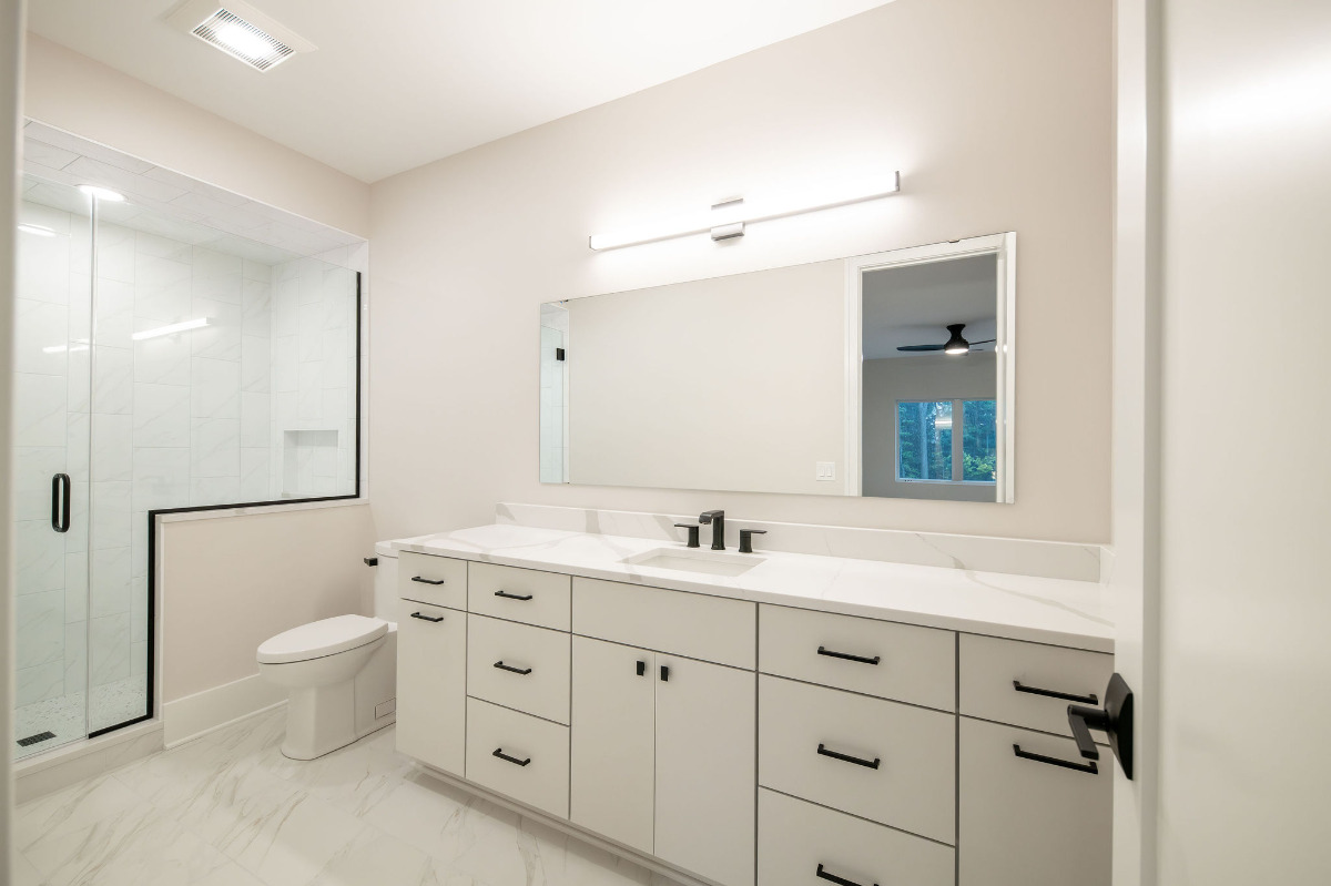 Lunar Ridge by Otero Signature Homes is a stunning contemporary new build located in Bainbridge Township, Ohio. Designed with a clean, minimalist aesthetic, this custom home features a calming neutral palette of off-whites, black, and natural white oak, creating a serene and cohesive environment throughout. Signature design elements include a breathtaking floating white oak staircase crafted as a sculptural focal point, a double-height fireplace wrapped in white crystal tile, and a built-up quartz waterfall island with a Freepower charging unit for elevated functionality. Thoughtfully curated finishes such as quartz full-height backsplash, stainless steel custom hood, champagne gold hardware, mixed metals, and custom cabinetry enhance both luxury and livability. Every detail was chosen to achieve a light and bright atmosphere without feeling sterile, showcasing Otero Signature Homes’ expertise in high-end modern custom design within the Greater Cleveland area.