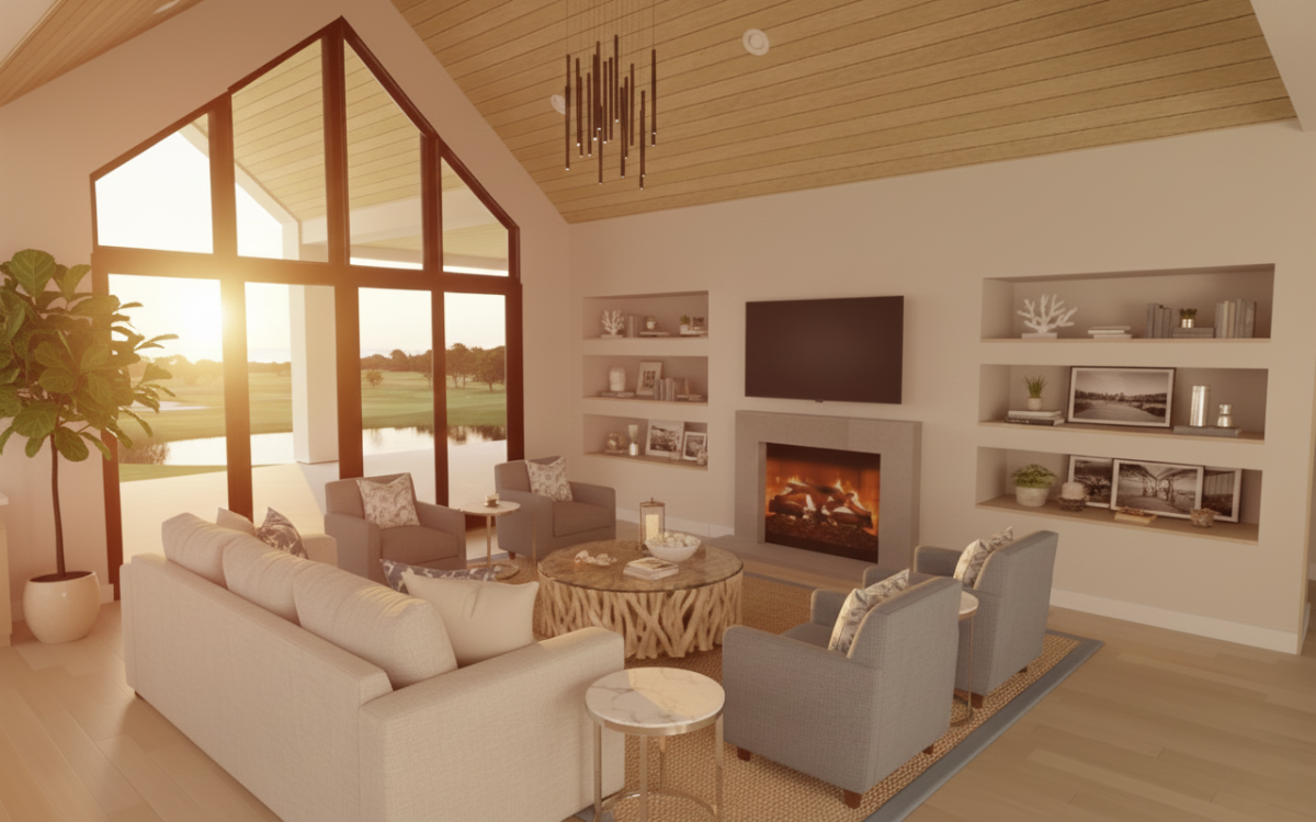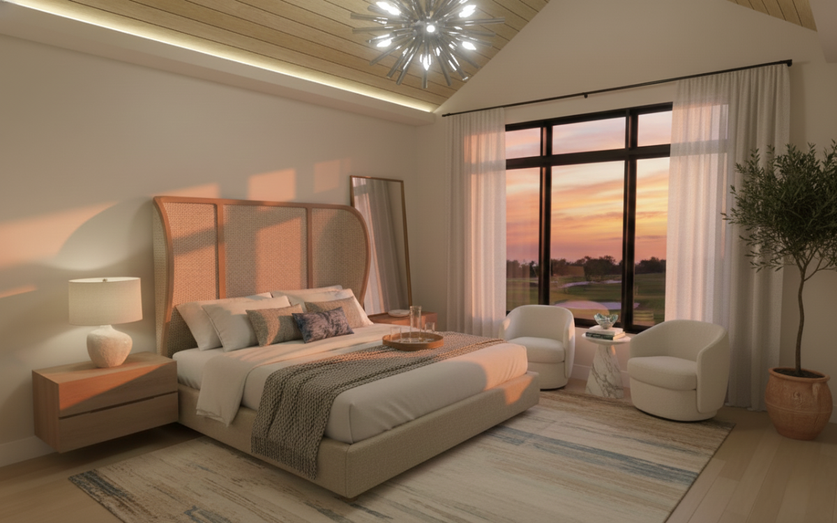 Located along the shores of Lake Erie, the model home at Peach Tree Estates offers four bedrooms, including a resort-style primary suite, three bathrooms, vaulted ceilings, and views of the golf course. Designed for relaxed island living, the home features generous outdoor living spaces and a double-depth garage with 14-foot doors—all crafted by Otero Signature Homes within this exclusive gated lakefront community.